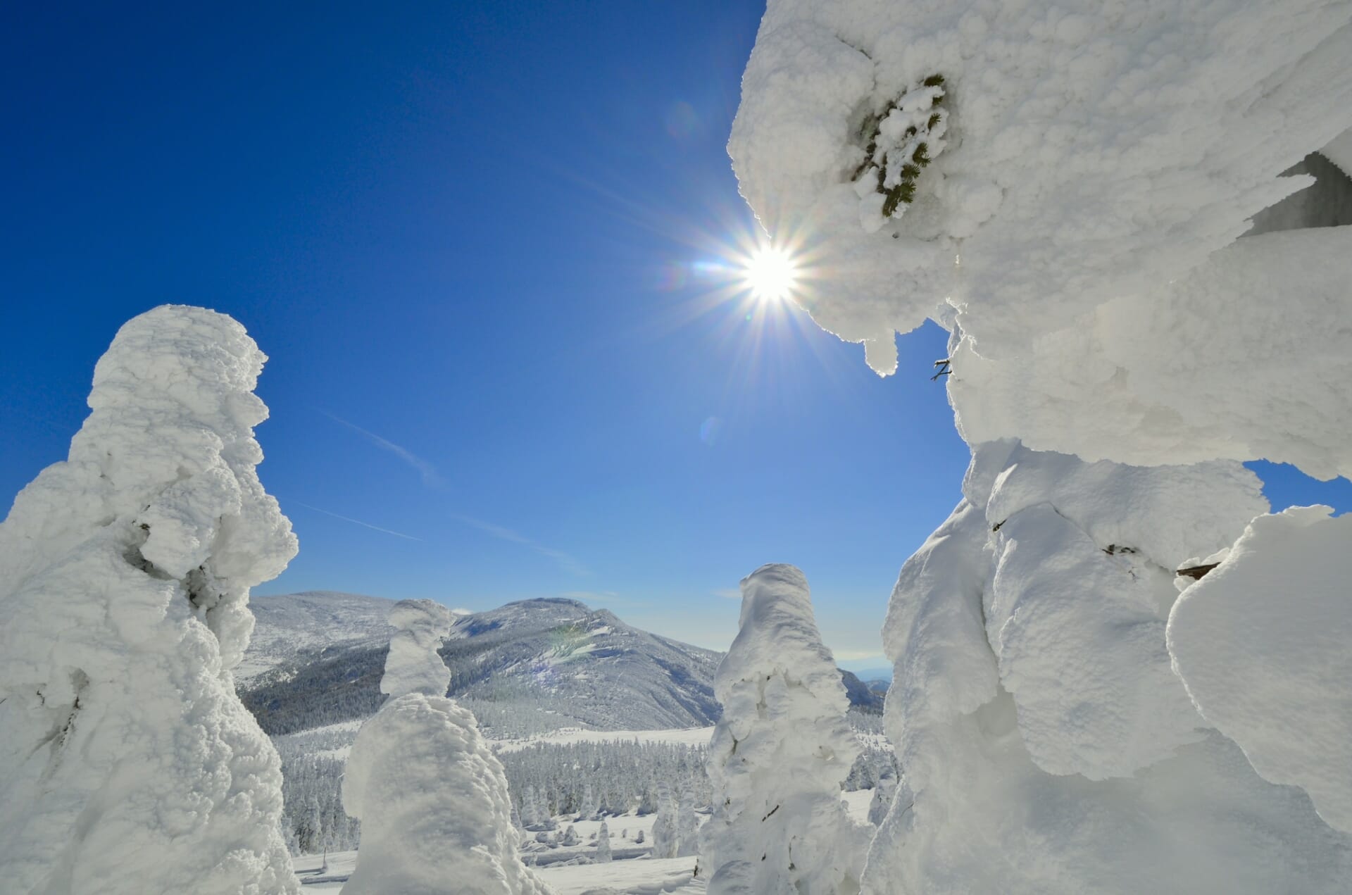 สามารถเที่ยวชมสโนว์มอนสเตอร์ (ต้นไม้ที่ถูกปกคลุมด้วยหิมะ) จากรถที่วิ่งบนหิมะซึ่งจะจัดขึ้นทุกวันและเป็นที่นิยมอย่างมากได้ หากสภาพอากาศอำนวย คุณจะได้เห็นสโนว์มอนสเตอร์ที่งดงามมาก